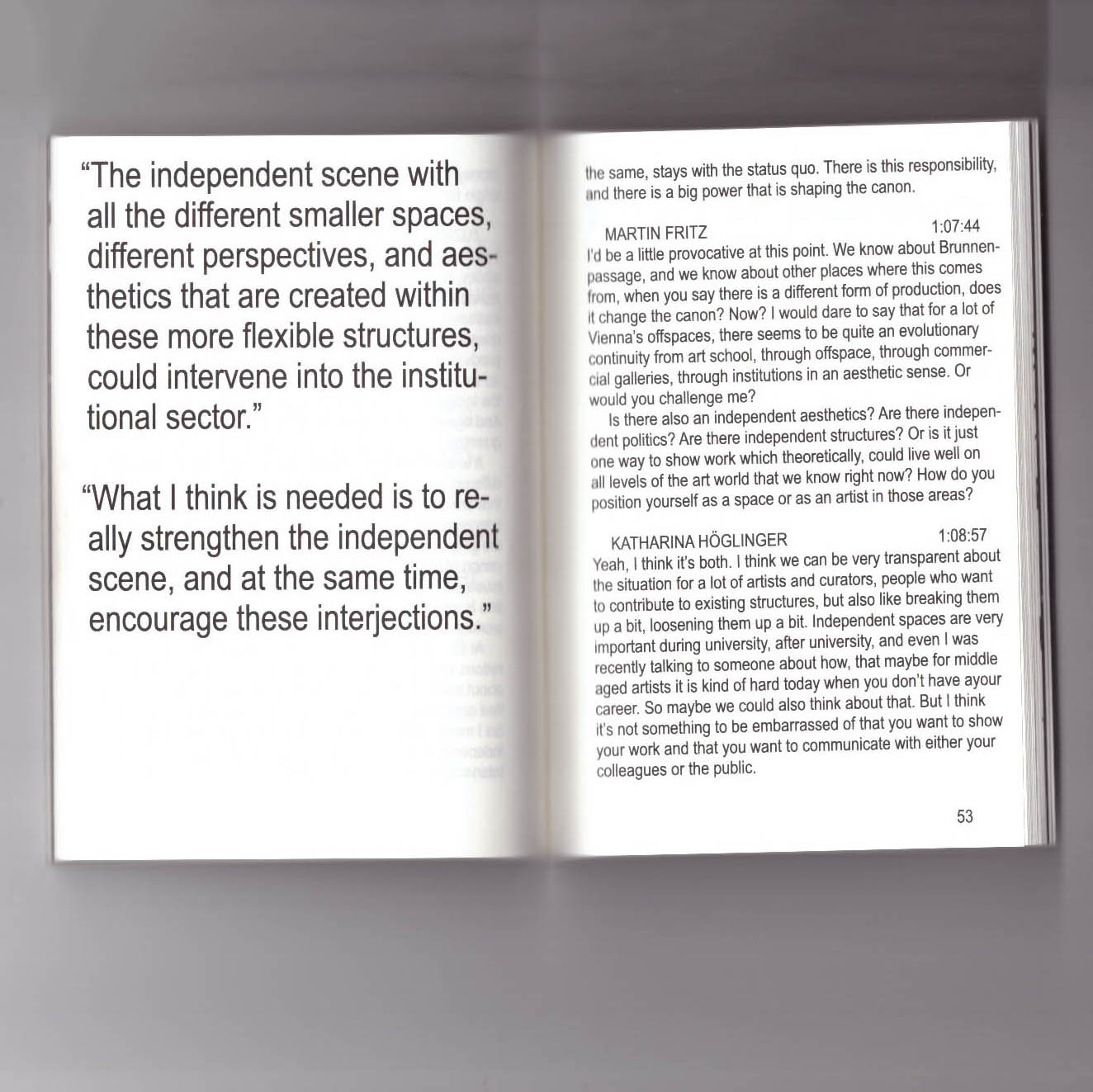 This is the edited transcript of a panel discussion organised by Francis Ruyter that took place on 22 June 2022 at Neuer Kunstverein Wien, in the framework of Independent Space Index festival, between Zuzana Ernst, Martin Fritz (Moderation), Katharina Höglinger, Bruno Mokross, Michael Part, Matthias Sohr, Vincent Weisl and Luisa Ziaja.