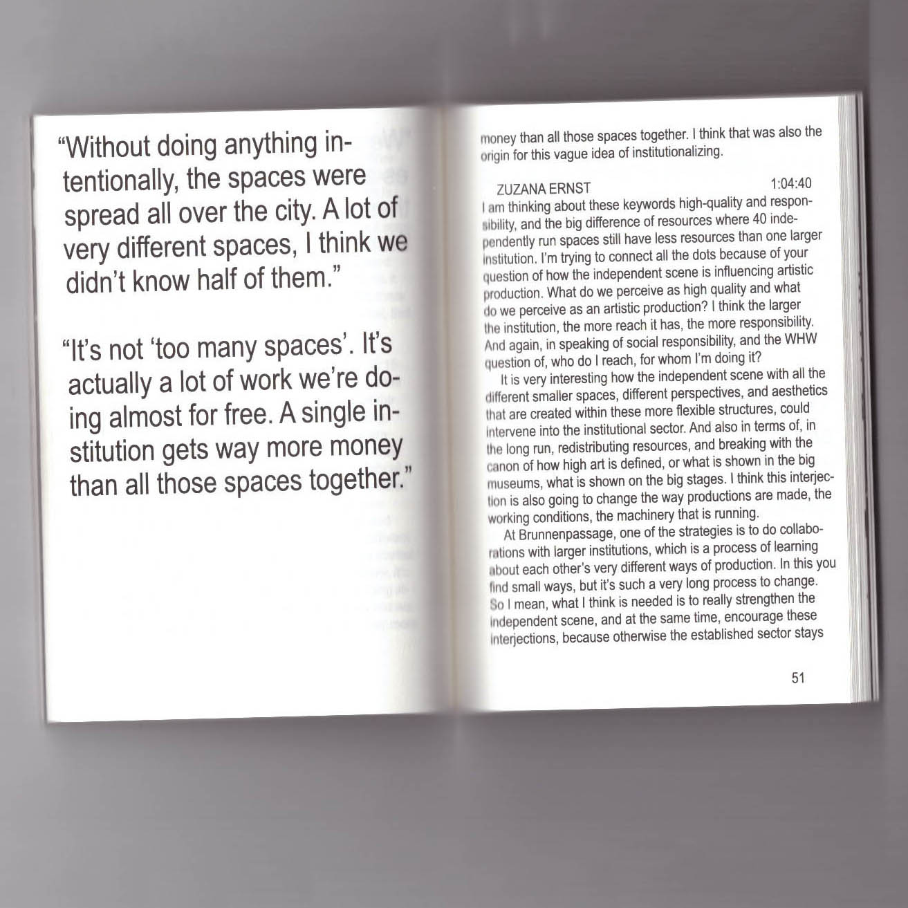 An early discussion at an Independent Space Index Stammtisch led to a proposal that Vienna’s independent scene could be considered a large and diverse intergenerational institution, presenting hundreds of exhibitions and projects per year, creating a responsive web of international networks.